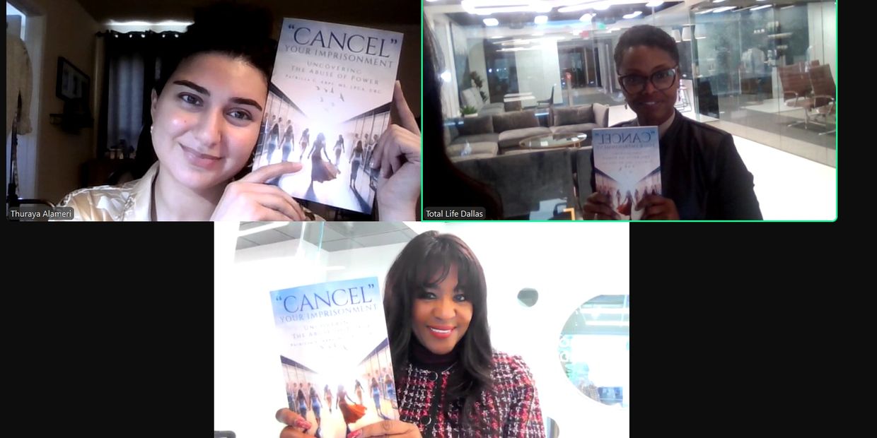 Patricia Arps connects with her readers in a powerful Zoom call, sharing insights and heartfelt discussions about her book "Cancel Your Imprisonment: Uncovering the Abuse of Power." As her customers engage with her story, their smiles and enthusiasm reflect the impact of Patricia's message on breaking free from the chains of power abuse.